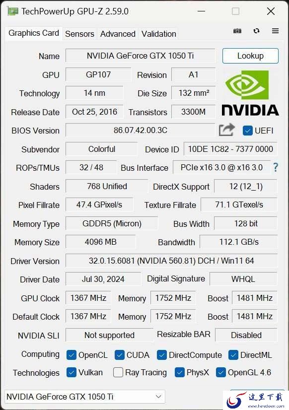 七彩虹iGame1050Ti 烈焰战神S-4GD5采用的是GP107-400-A1芯片,制程工艺为14nm,核心基础频率为1367MHz,Boost频率为1481MHz ,显存类型为GDDR5,显存大小为4GB。