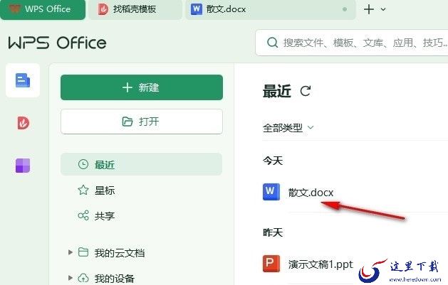 1、第一步,我们点击打开电脑中的WPS软件,然后在WPS软件中选择一个文字文档,点击打开该文档