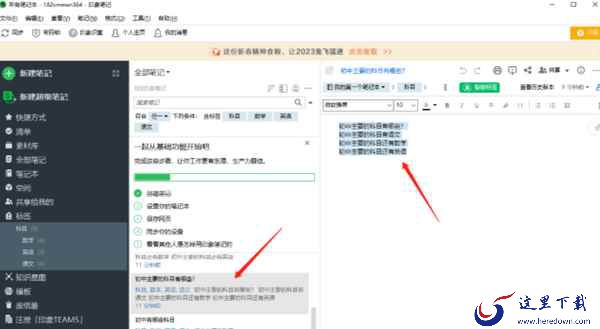 1、首先,双击打开印象笔记,在主界面找到要加密的文本内容,将文本内容全选;