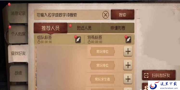 点击游戏大厅右上角的社交图标,点击查找好友。可以通过扫码加好友,面对面加好友,或者输入ID添加好友。在搜索栏输入想要添加的好友,点击搜索。然后点击要添加的人员后面的加号,点击确定,这样好友申请就发送了。