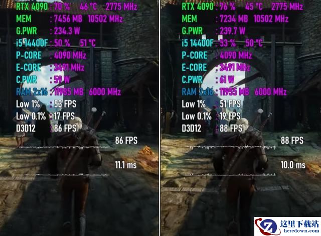 以下将分别测试七款游戏,均采用1080P最高画质模式,以下系列图片中左边代表Windows 11 23H2平台,右边代表平台。