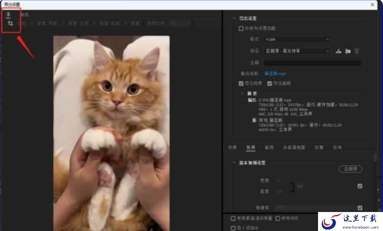 1、在“导出设置”面板中点击左上角的“裁剪”,然后双击以应用该效果到选中的视频片段。