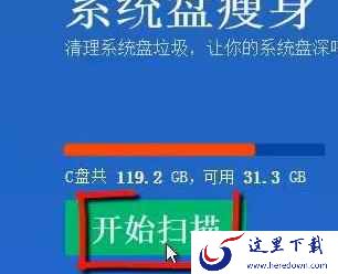 弹出系统盘瘦身对话框以后,我们点击开始扫描。