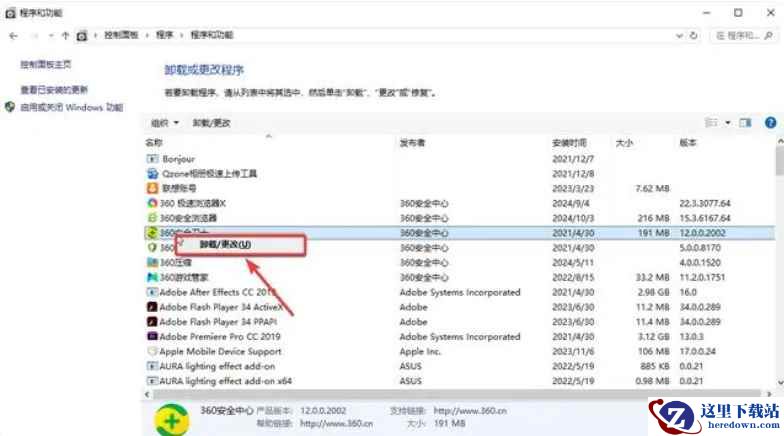 3、在程序列表中,找到“360安全卫士”,右键点击“360安全卫士”,并选择“卸载”选项即可。