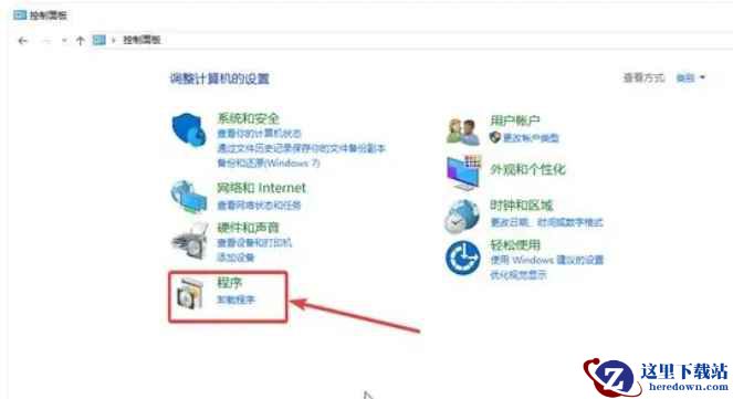 2、进入控制面板界面后,点击“程序”,选择“卸载程序”选项。