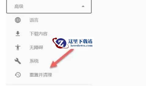 在展开的高级选项中,找到并点击“重置并清理”这个选项。