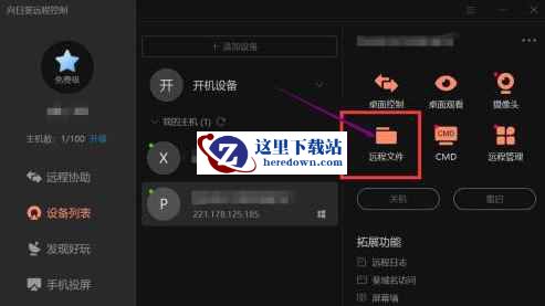 需要调用办公室电脑的文件的时候,(以向日葵电脑主控端为例)叫同事帮你把电脑打开,登录你的向日葵主控端点击你的在线主机,选择远程文件功能。