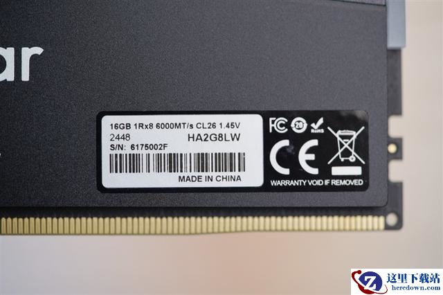 贴纸上写有内存的详细参数,6000MT/s,CL26和电压1.45V。