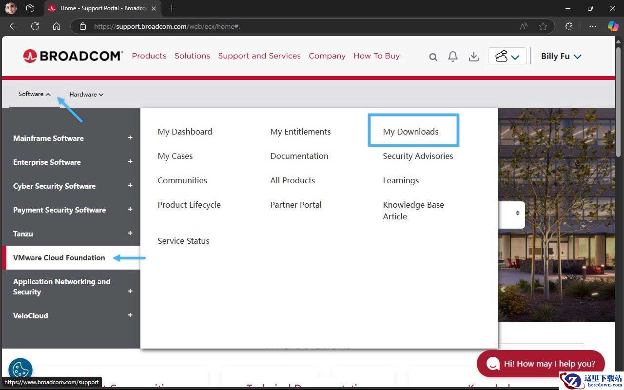 2、依次选择「Software」>「VMware Cloud Foundation」>「My Downloads」。
