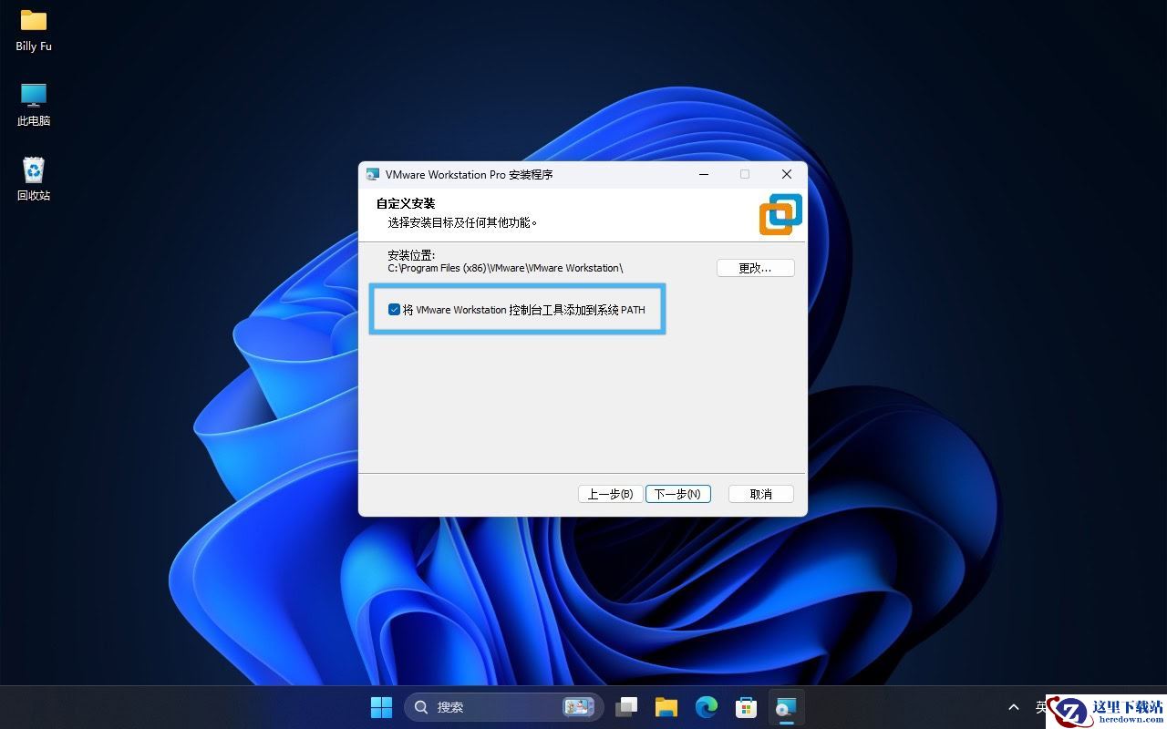 3、勾选「将 VMware Workstation 控制台工具添加到系统 PATH」,然后点击「下一步」。