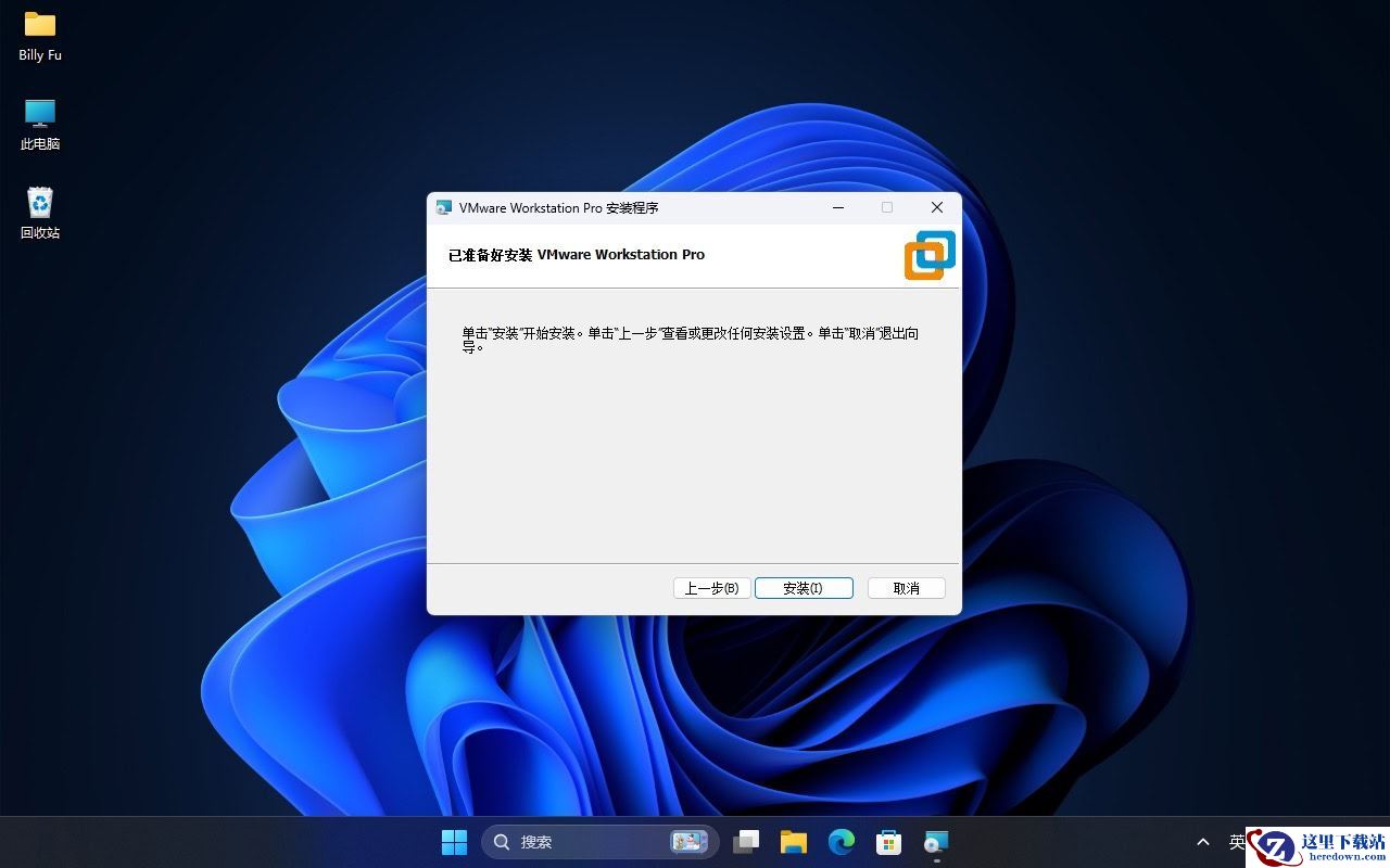6、点击「安装」开始安装 VMware Workstation Pro。