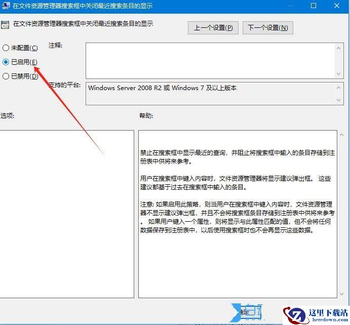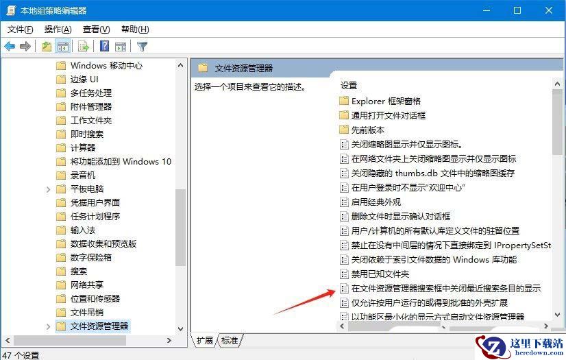 3、然后,找到并双击打开其中的“在文件资源管理器搜索框中关闭最近搜索条目的显示”设置。