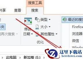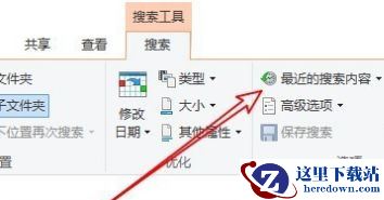 2、接下来在打开的搜索功能区,点击“最近的搜索内容”下拉按钮。