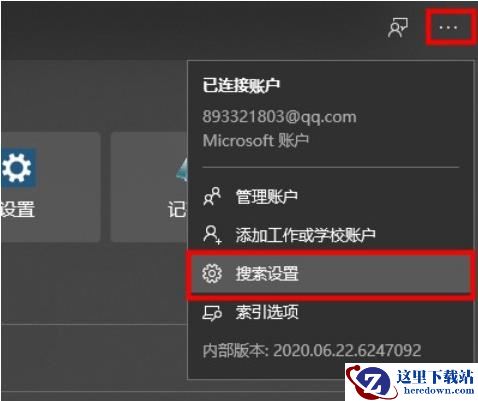 1、我们首先打开win10搜索框,点击右上方的三点搜索设置。