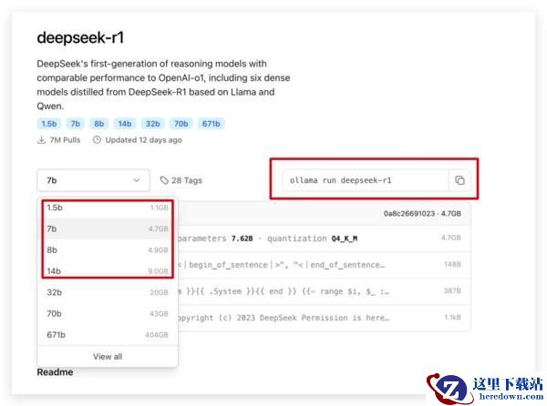 像我们普通的电脑安装 1.5B,7B 就可以使用,然后在【右上角的的代码】复制在命令行中运行。