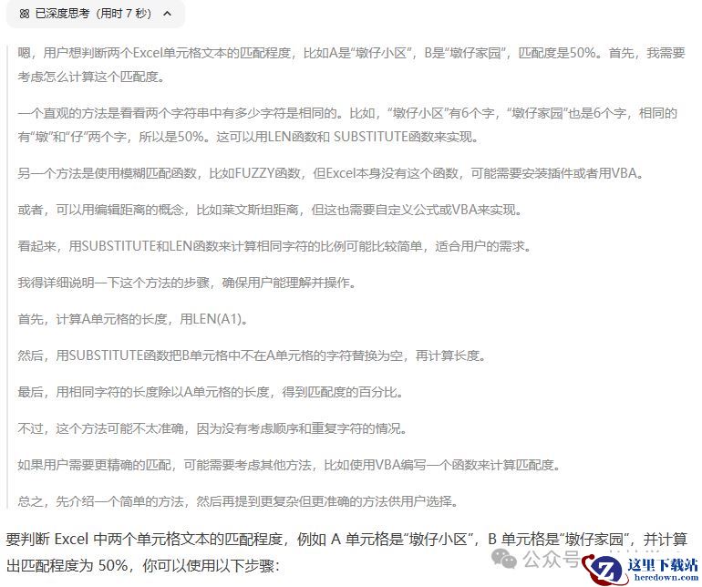 前段时间碰见一个excel使用难题,想要计算两列内文本单元格的匹配度,看两个不同来源的数据是否匹配,用excel公式如模糊匹配等怎么都没法达到要求,就想到最近Deepseek在数学算法方面比较牛,就问了下,完美解决这个难题,记录下解决过程。
