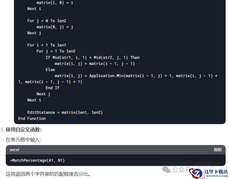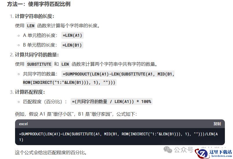提问:如何判断excel两个单元格文本的匹配程度,例如A单元格是"墩仔小区”,B单元格是"墩仔家园",则匹配程度是50%