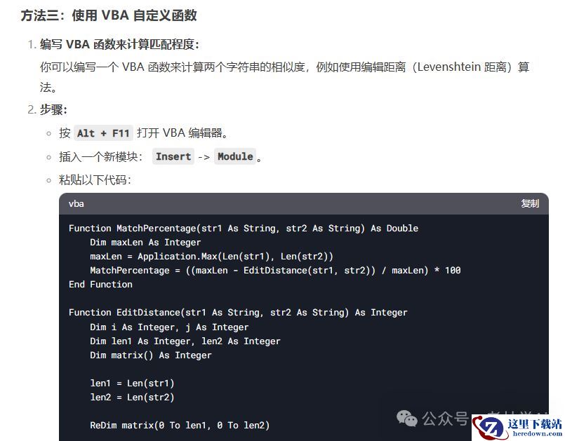 方法一 是最简单的方法,但可能不完全准确,因为它不考虑字符的顺序和重复情况。方法二 需要安装插件,但提供了更强大的模糊匹配功能。方法三 提供了最大的灵活性和准确性,但需要编写 VBA 代码。选择适合你的方法来计算匹配程度。