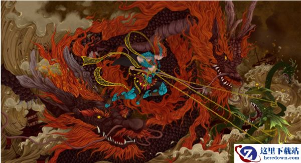 在经典的征途十国中,楚国一直都是各位玩家朋友们心神向往的国家,还曾诞生“楚魂V随风随行”这样的精神领袖,自此楚国备受玩家重视。《史记》中记载“祝融是楚人的祖先”,作者具备较好的绘画能力和较鲜明的个人特点,作品巧妙暗扣征途主题,将重点放在了肌理点线、色块等构置因素的关系上,画面出现的美感较写实风格又更不可思议,构图设计比例近乎完美,将合情合理的变体国潮与征途元素完美结合,画面寓意丰富,视觉效果有着非常强的艺术感染力。