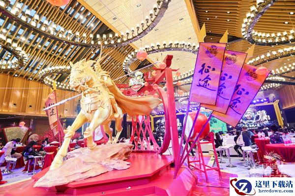 广富林会场灯光炫目,星光璀璨,以大气而精巧的布置真实还原征途游戏中的特色场景,铁匠铺、十国点将台、战马将军、皇帝宝座……带给玩家沉浸式的古战场体验,突出嘉年华晚会的战争主题“决战皇城之巅”!