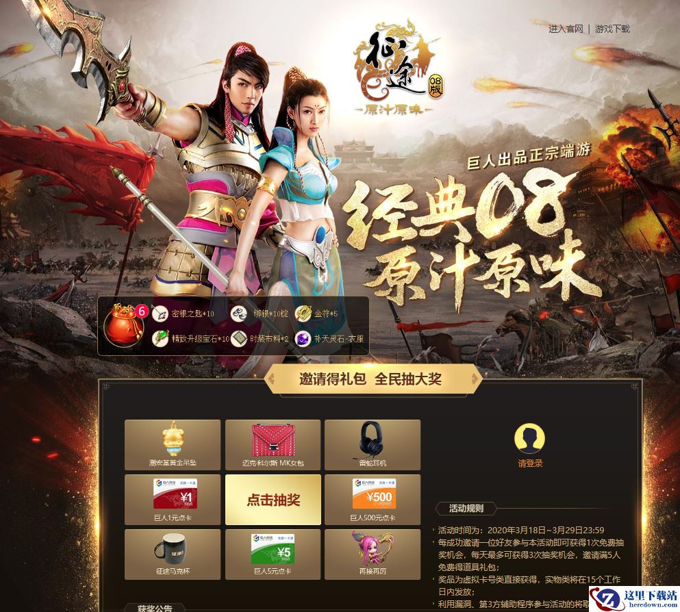 巨人出品,正版征途,原汁原味,经典重现。3月27日,由巨人网络精心打造的《征途》经典08版将正式上线。