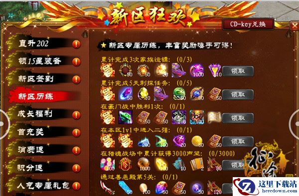 ■新区历练:动期间,玩家每天上线均可完成一项历练任务,完成全部6项历练任务就可领取永久金鳞天狼等豪华大礼!