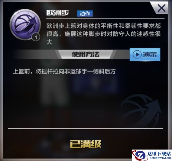 欧洲步:罚球线以内的区域;要在你的过人动作快结束的时候,先按非持球手的斜下方,再按投篮,要注意把动作交代清楚,不能按太快,也不能按不对方向,一个动作完再接下一个动作,等你玩熟练了,你就会用的很自然了。