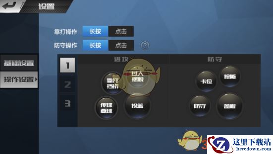 上面大家可以看到,靠打操作和防守操作是分长按或者点击的。意思就是说,如果玩家选择长按,玩家就需要一直长按靠打或者防守才能保持动作,当长按松开了,就会取消动作。而点击就是当你点击了靠打或者防守后,就会一直自动保持当前操作,再次点击时就取消。