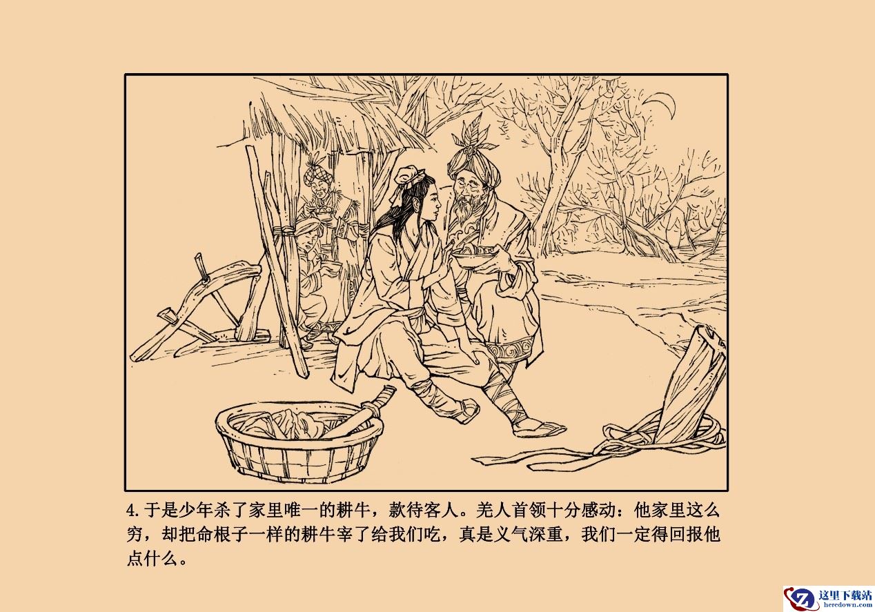 在连环画中,主要讲述了少年董卓收服羌人的故事。董卓年轻时仗剑行侠,结识了许多羌人首领,虽然家境贫寒,却依旧宰杀了家中唯一的耕牛来招待来访的羌人首领,羌人感怀于他的热诚,纷纷赶来投奔于他。对此感兴趣的小伙伴们还可以关注公众号“三国群英传2网络版”,观看完整连环画内容。