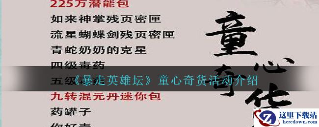 《暴走英雄坛》手游2021童心奇货有什么呢?【童心奇货】是2021六一儿童节上线的,本次有哪些商品会在奇货中呢?下面就是小编给大家带来的《暴走英雄坛》童心奇货活动介绍,想要了解的小伙伴一起看看吧!