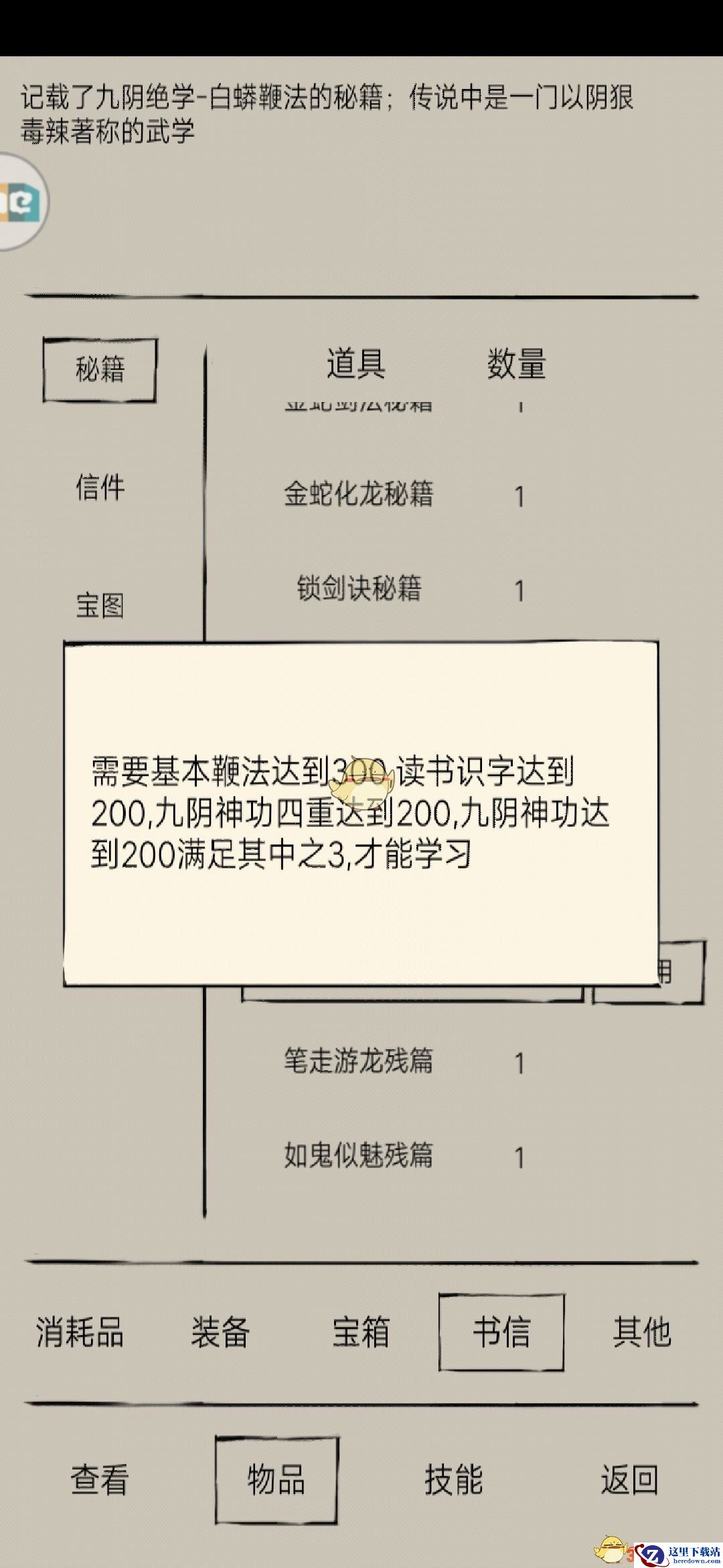 2、战胜黄衫女子后有概率掉落【白蟒鞭法】和【九阴神功下篇】