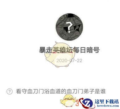 【看守血刀门浴血道的血刀门弟子是谁】这是《暴走英雄坛》2020年7月22日每日一题题目,大家知道今日答案是什么吗?下面是小编给大家带来的《暴走英雄坛》7月22日每日暗号答案,还不清楚答案的小伙伴一起看看吧!