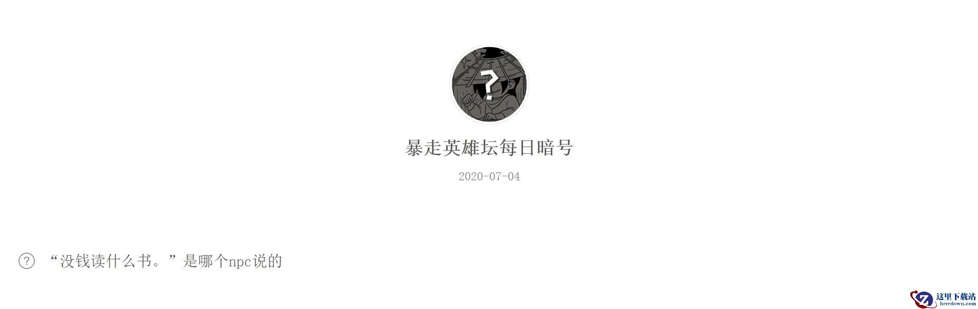 【没钱读什么书?是哪个npc说的】这是《暴走英雄坛》2020年7月4日每日一题题目,大家知道今日答案是什么吗?下面是小编给大家带来的《暴走英雄坛》7月4日每日暗号答案,还不清楚答案的小伙伴一起看看吧!