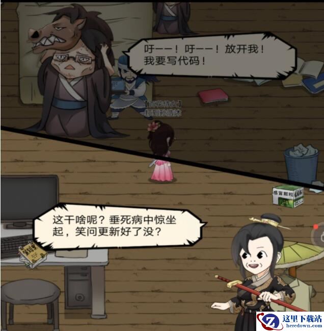从里面进去来到躺尸的晓峰办公室,向下走一步触发剧情,会提升你到平二指那里拿药,从左下角旋涡离开,