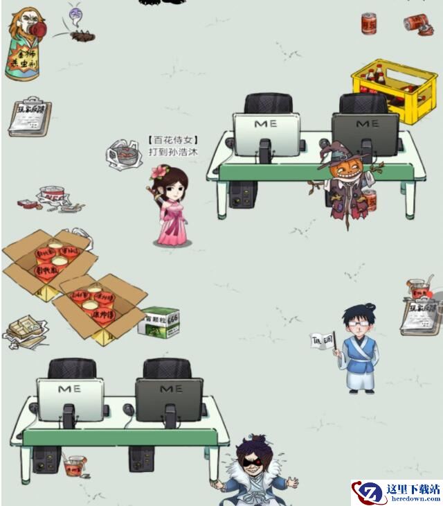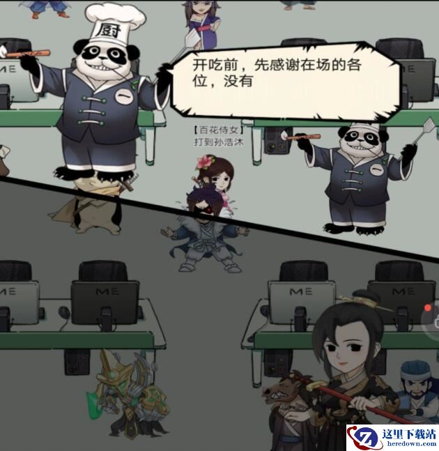 点击赵国宝解救,然后赵国宝发现自己少了三张饼委托你去找,这三个饼在门外面,很明显就能看到,左下角那个饼需要触发对战任务,很简单拿了三个饼去找赵国宝,他会让你去会议室吃饼