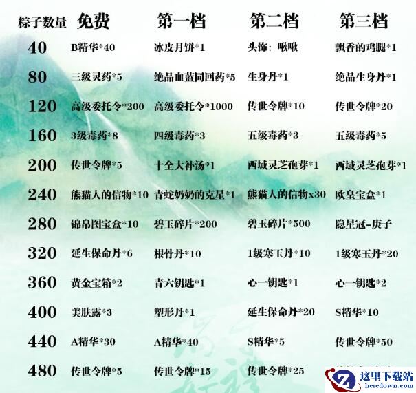 每日琅嬛福地推进到40层之后,在退出福地(结算收益)时统一产出20个粽子。