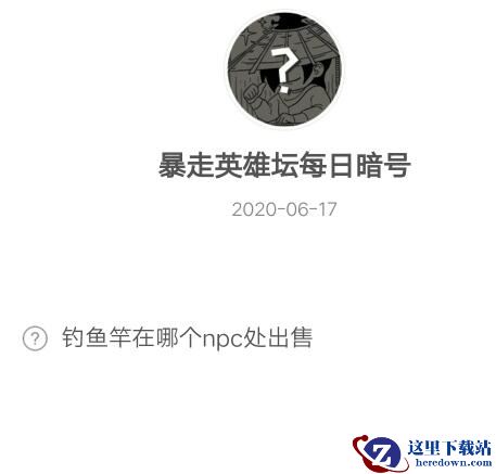 【钓鱼竿在哪个npc处出售】这是《暴走英雄坛》2020年6月17日每日一题题目,大家知道今日答案是什么吗?下面是小编给大家带来的《暴走英雄坛》6月17日每日暗号答案,还不清楚答案的小伙伴一起看看吧!