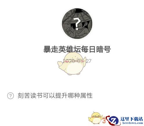 【刻苦读书可以提升哪种属性】这是《暴走英雄坛》2020年5月27日每日一题题目,大家知道今日答案是什么吗?下面是小编给大家带来的《暴走英雄坛》5月27日每日暗号答案,还不清楚答案的小伙伴一起看看吧!