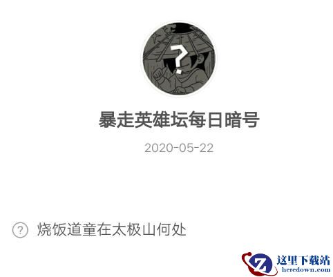 【烧饭道童在太极山何处】这是《暴走英雄坛》2020年5月22日每日一题题目,大家知道今日答案是什么吗?下面是小编给大家带来的《暴走英雄坛》5月22日每日暗号答案,还不清楚答案的小伙伴一起看看吧!