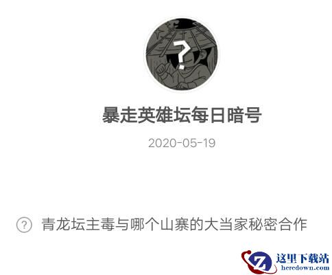【青龙坛主毒与哪个山寨的大当家秘密合作】这是《暴走英雄坛》2020年5月19日每日一题题目,大家知道今日答案是什么吗?下面是小编给大家带来的《暴走英雄坛》5月19日每日暗号答案,还不清楚答案的小伙伴一起看看吧!