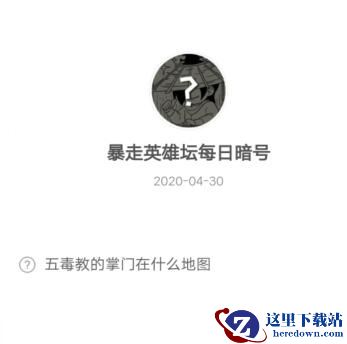 【五毒教的掌门在什么地图】这是《暴走英雄坛》2020年4月30日每日一题题目,相信很多小伙伴还并不知道答案是什么,别担心,下面是小编给大家带来的《暴走英雄坛》4月30日每日暗号答案,想知道的小伙伴一起看看吧!