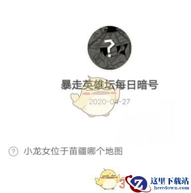 暴走英雄坛4月27日【小龙女位于苗疆哪个地图】暗号答案是什么?这是微信公众号中推出的题目,大家知道答案吗?还不清楚的小伙伴,和小编一起看看《暴走英雄坛》4月27日暗号答案介绍吧!