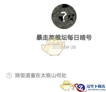 暴走英雄坛4月26日【烧饭道童在太极山何处】暗号答案是什么?这是微信公众号中推出的题目,知道答案之后就可以在游戏中领取奖励了哦。下面给大家带来的就是《暴走英雄坛》4月26日暗号答案介绍了,还不清楚答案的一起看看吧!