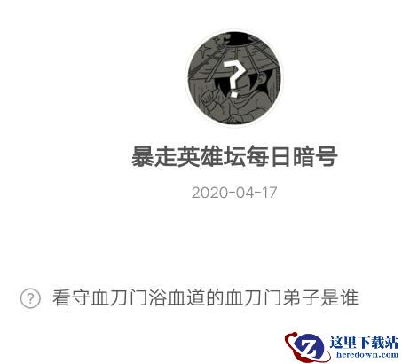 暴走英雄坛4月17日【看守血刀门浴血道的血刀门弟子是谁】暗号答案是什么?这是微信公众号中推出的题目,知道答案之后就可以在游戏中领取奖励了哦。下面给大家带来的就是《暴走英雄坛》4月17日暗号答案介绍了,还不清楚答案的一起看看吧!