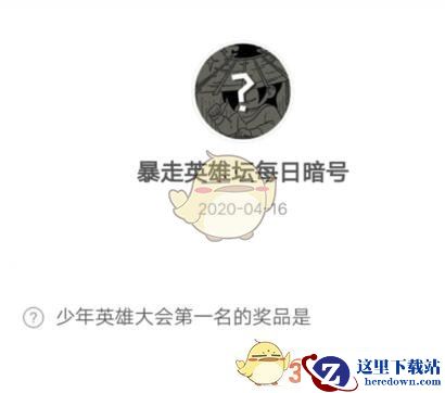 暴走英雄坛4月16日【少年英雄大会第一名的奖品是】暗号答案是什么?这是微信公众号中推出的题目,知道答案之后就可以在游戏中领取奖励了哦。下面给大家带来的就是《暴走英雄坛》4月16日暗号答案介绍了,还不清楚答案的一起看看吧!