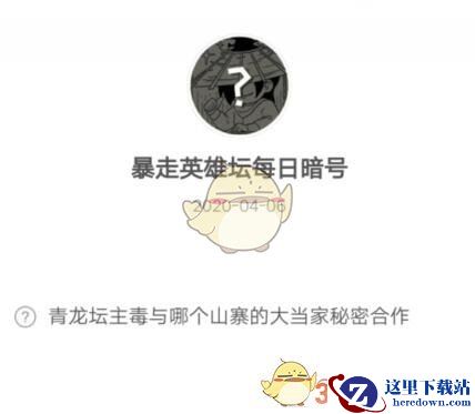 暴走英雄坛4月6日【青龙坛主毒与哪个山寨的大当家秘密合作】暗号答案是什么?这是微信公众号中推出的题目,知道答案之后就可以在游戏中领取奖励了哦。下面给大家带来的就是《暴走英雄坛》4月6日暗号答案介绍了,还不清楚答案的一起看看吧!