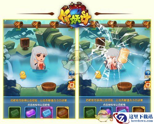 《作妖计》的公会温泉常年有一个长发飘飘的靓丽背影,当你向ta扔个肥皂,一个白发智者将会以异常贱萌的形式来个亮相……
