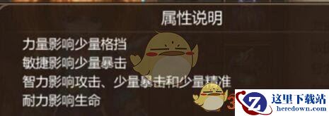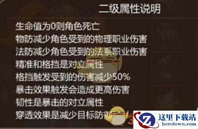 每个职业都分为一级属性和二级属性,一级属性就是四维属性,二级属性分为生命、攻击、物防、法防、穿透、生命恢复、精准、暴击、韧性、格挡,每个属性加成的属性都有不同,下面我们来看下游戏内的介绍吧。