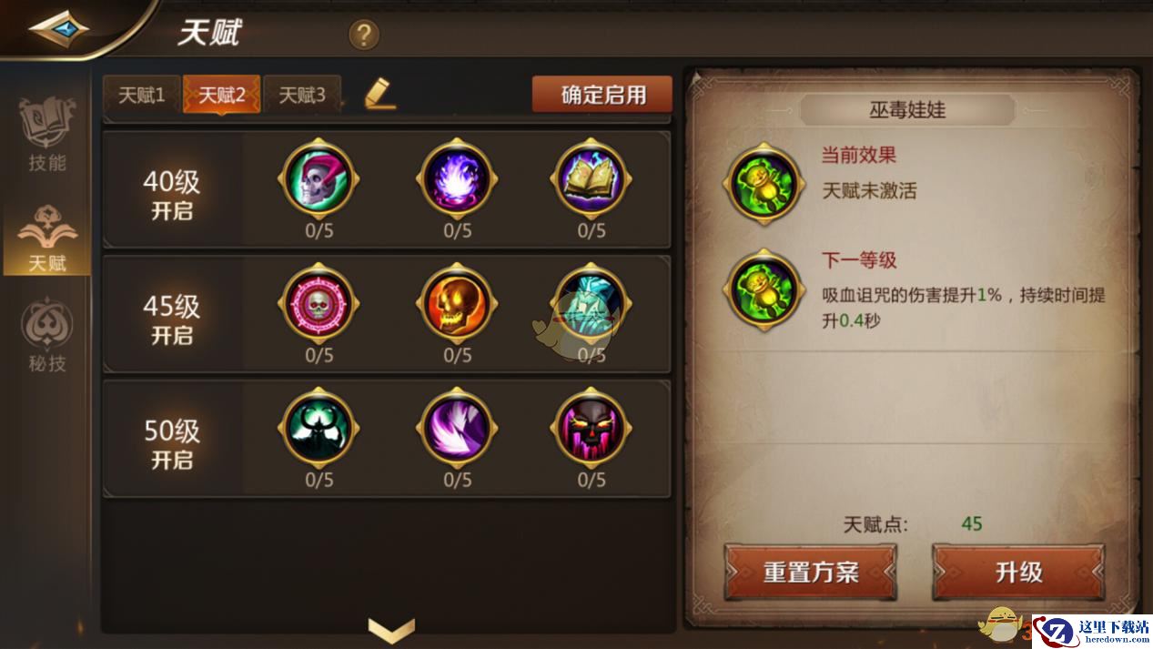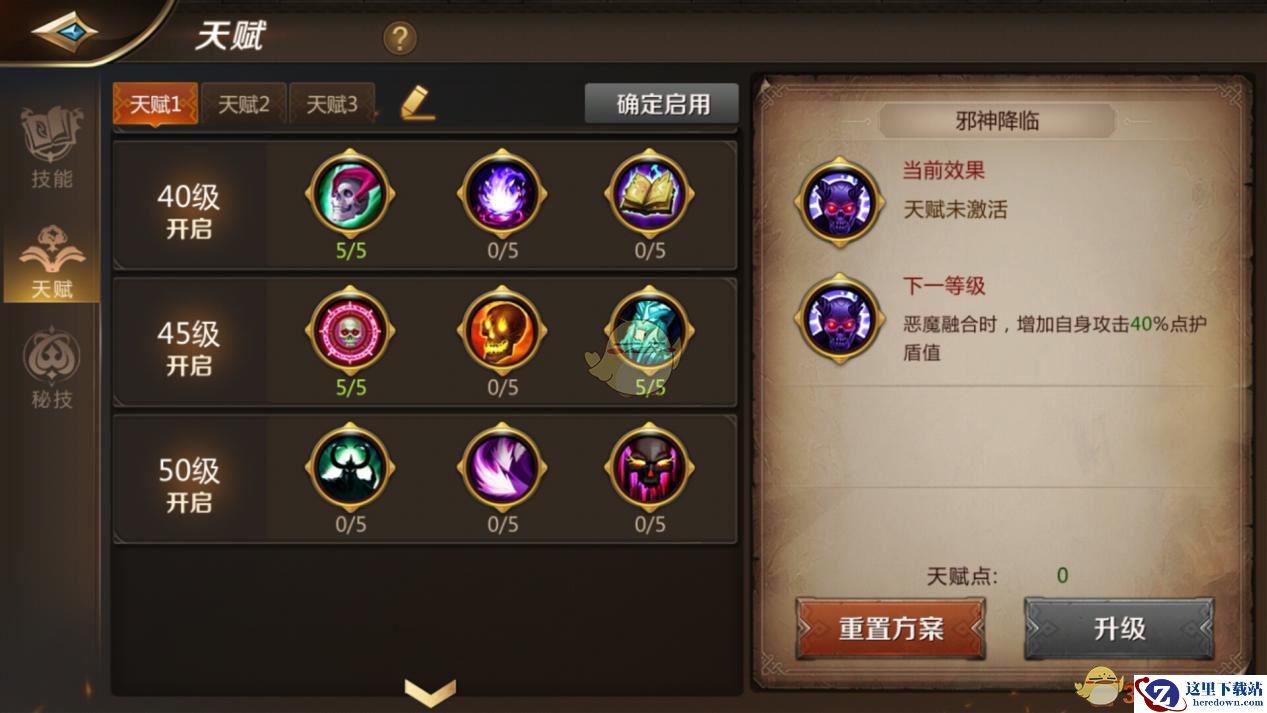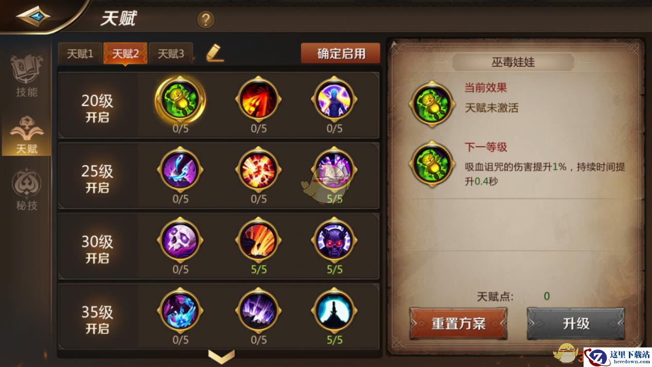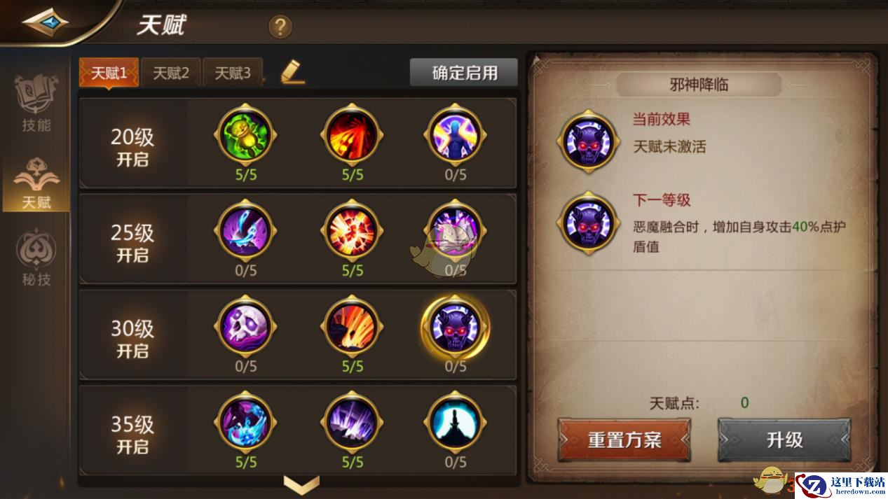 30级开启的天赋:瘟疫扩散、嗜焰、邪神降临。