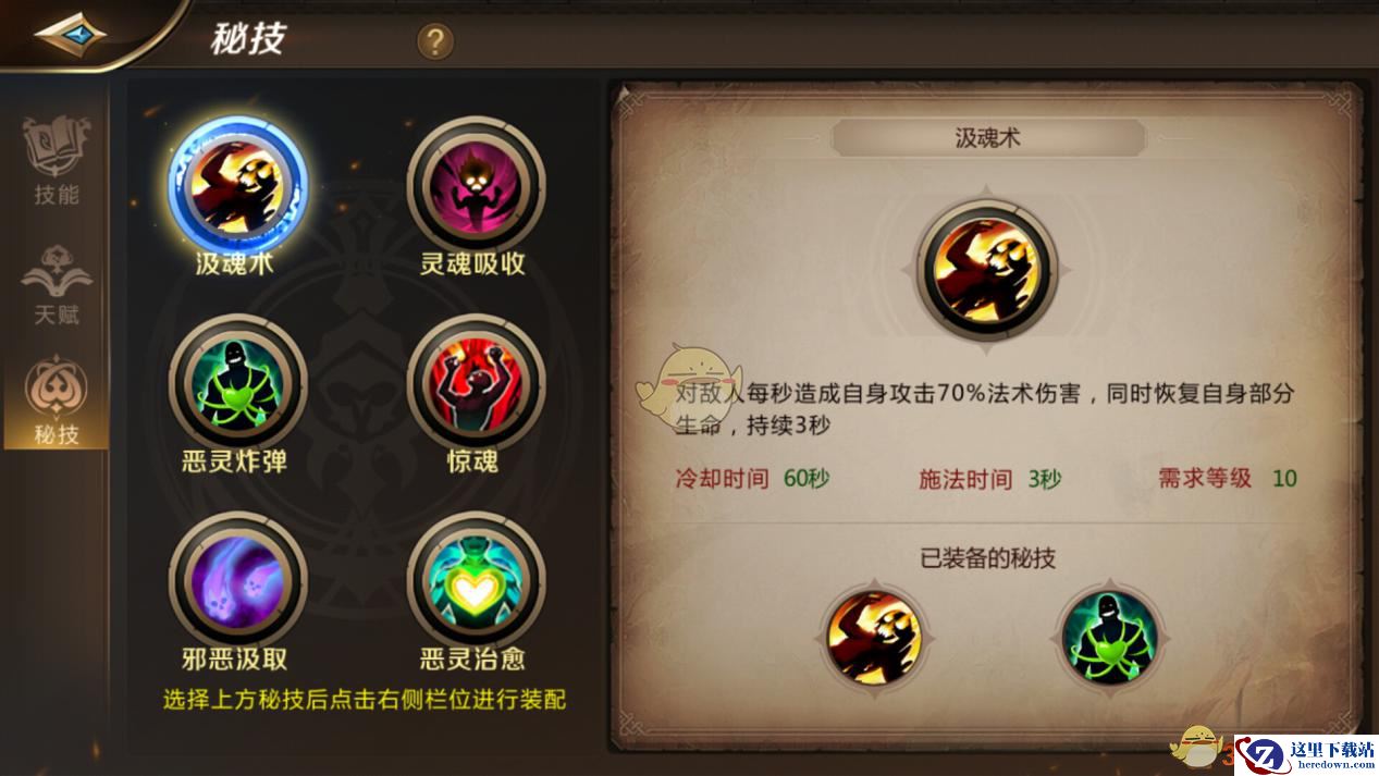 秘技:汲魂术和恶灵炸弹(个人玩法不同,所带秘技不同,我这里是带这两个)。